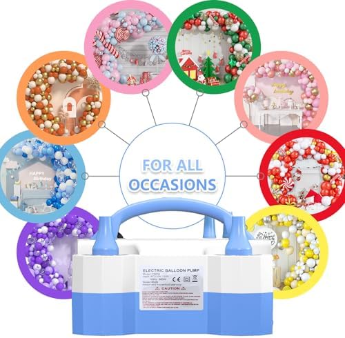 - 【Ballon Pump Inflate】 Featuring a dual nozzle design, our electric balloon pump allows for the speedy inflation of both latex and helium balloons. With powerful airflow, you can inflate multiple balloons in no time, making your decorating process a breeze. Our Balloon Pump for weddings, bridal showers, baby shower, birthday, Valentine’s Day, engagement, Anniversary, graduation, Christmas party decorations, and so on.