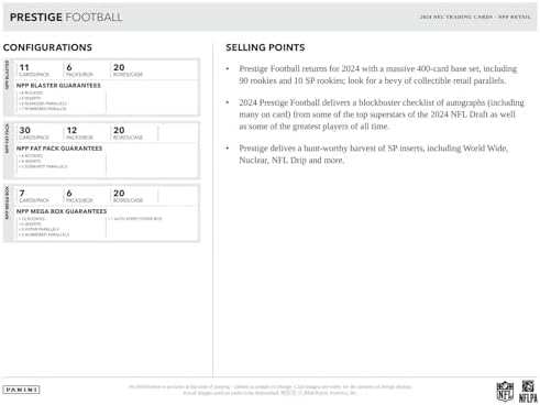 2024 Panini Prestige Football Trading Cards Blaster Box