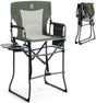 EVER ADVANCED Portable 30.7" Seat Height Tall Folding Camping Chair Directors Chair High Foldable Bar Stool with Side Table for Makeup Artist, Sports Event, Craft Show, Supports 350LBS Green Grey