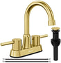 Gold Bthroom Faucet, Brushed Gold Bathroom Faucet, Gold Faucets for Bathroom Vanity, 4 Inch 2 Handle Centerset, Lead-Free, with Copper Pop Up Drain (Brushed Gold)