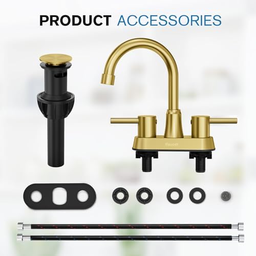 Gold Bthroom Faucet, Brushed Gold Bathroom Faucet, Gold Faucets for Bathroom Vanity, 4 Inch 2 Handle Centerset, Lead-Free, with Copper Pop Up Drain (Brushed Gold) is backordered and will ship as soon as it is back in stock.