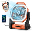 Odoland Camping Fan with LED Lantern, 20000mAh Rechargeable Battery Operated Fan, Portable Outdoor Light with Rotation Hook for Picnic Power Outage Hurricane Emergency Home Patio, Orange