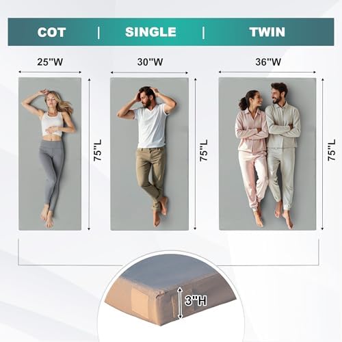- 【Comfort & Supportive】This camping mattress features 2-Layer design. 1" gel-infused memory foam conforms to your body's curves to relieve pressure on your body. 2" high-density support foam is highly supportive and prevents you from hitting the ground. This combination creates a medium firmness that balances comfort and support and retains its shape even after extended use.