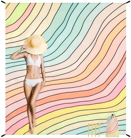 - Durability and Wind-Resistant Stability: Crafted from ripstop polyester, this high-quality and Durability beach blanket is built to last. Its corner pockets for sand anchoring and included stakes ensure it stays securely in place, even on windy beach days.