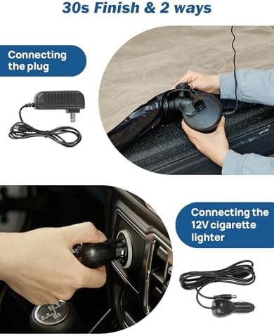 - 【Quick Inflation】: Inflate your mattress effortlessly with our two-in-one car air pump, which includes both a standard plug and a cigarette lighter adapter. It fills quickly and maintains air well for a comfortable night’s sleep.