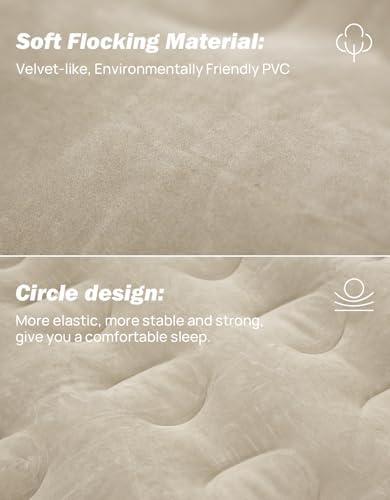 - 【Cavity Design】: our design significantly reduces the risk of air leakage while enhancing durability and longevity. The surface and pillows are crafted from a soft, velvet-like flocking fabric for a plush feel, and the high-quality PVC bottom helps prevent leaks.