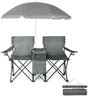 Outvita Folding Double Camping Chair w/Umbrella Beverage Holder Carrying Bag Cooler Fold Up Table, Large Bearing Capacity for Beach Patio Pool Park Outdoor Gray