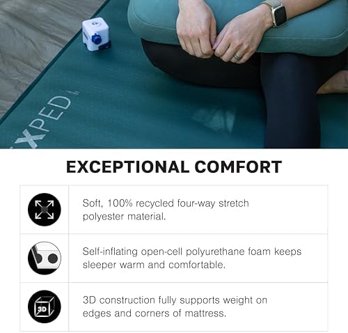 Exped MegaMat Medium Wide - Self Inflating Soft Car Sleeping Mat, 4” Foam Pad, Pump Included