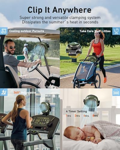 - β πππ-ππ-πππ ππππππ ππππ ππππππππ πππππππππ - DUKUSEEK rechargeable clip on fan is perfect for a variety of settings. Its strong 3.5 inch clamp securely attaches to desks, bed frames, treadmills, baby strollers, golf carts and hanging on tent etc. It has 4 timers for you to set at 1H/2H/4H/8H, customizing your own time for cooling and lighting. Ideal for indoor use, outdoor adventures, or special needs like wheelchairs or car back seats, it provides cooling comfort wherever needed.
