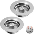 3 in 1 Kitchen Sink Drain Strainer & Sink Stopper, 304 Stainless Steel Pop Up Sink Drain Stopper with Anti-Clogging Basket for US Standard (Silver - 2 Pack)