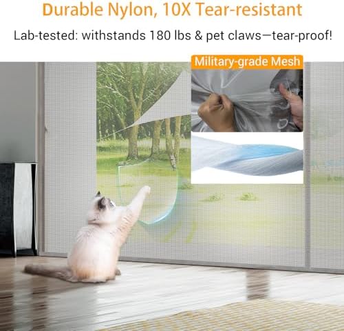 - [Military-Grade Nylon Mesh – 10X Tougher] SOLODOTO garage screen door mesh is 10X tougher than flimsy alternatives, lab-tested to withstand 180 lbs of force and pet claws—no shredding or replacements needed, even through Fido’s zoomies.