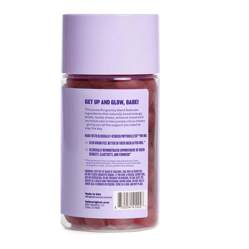 BABE ORIGINAL Energy, Mood & Skin Gummy Supplement with Ginseng, Vitamin B12. Vitamin B6 | Vegan Gummies for Improved Energy, Mood, & Revitalized Skin - Gluten-Free, Vegan - Citrus Burst (60 Count)