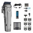 Details: The FXONE LO-PROFX Clipper features the new interchangeable battery with quick release button. It comes with the clipper, battery, and charging base. The clipper ships with the new FX8022BL blue ultra-think metal-injection molding (MIM) blade and the new N1 Brushless motor - which has dual ball bearings for more efficiency and 6800RPM/13,600 SPM. It included 8 comb attachments