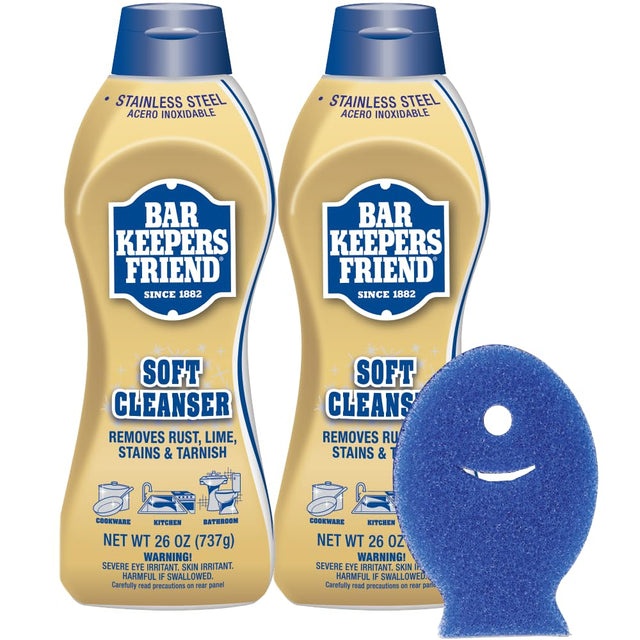 Bar Keepers Friend Soft Cleanser Liquid (2 x 26 oz) Plus Dish Fish Sponge - Multipurpose Cleaner & Rust Stain Remover for Stainless Steel, Porcelain, Ceramic Tile, Copper, Brass & More