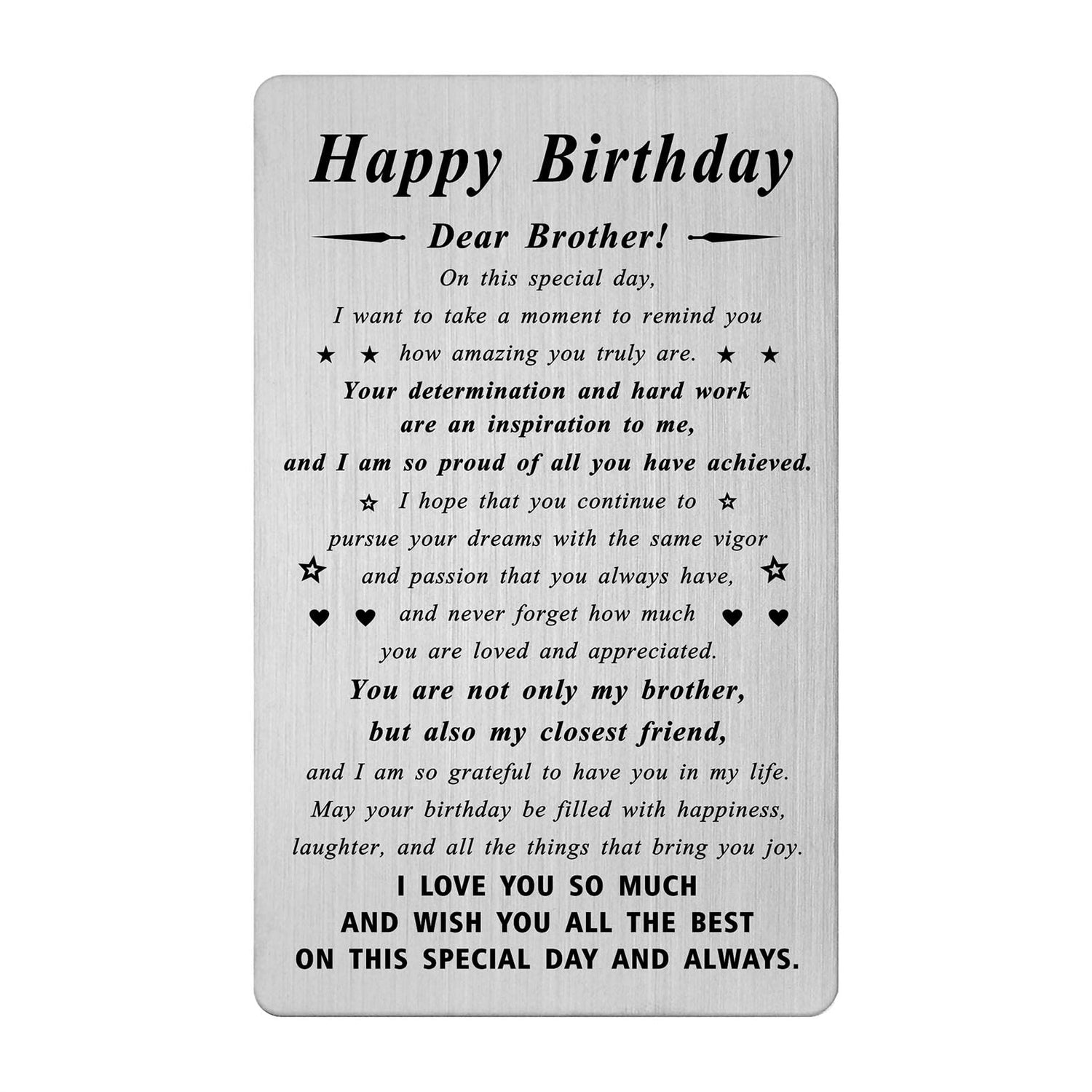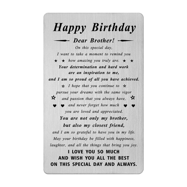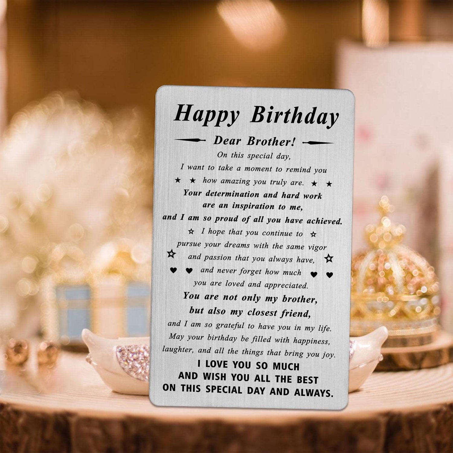 - Brother Birthday Gifts Unique, The heartfelt message engraved on the card lets your brother know how special he is to you. It's a beautiful way to remind her of your love and support on her special day.