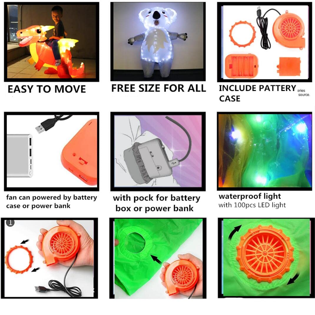 - Design:Kids Inflatable Costume with 100pcs LED light, perfect for day and night show. costume and light are waterproof.