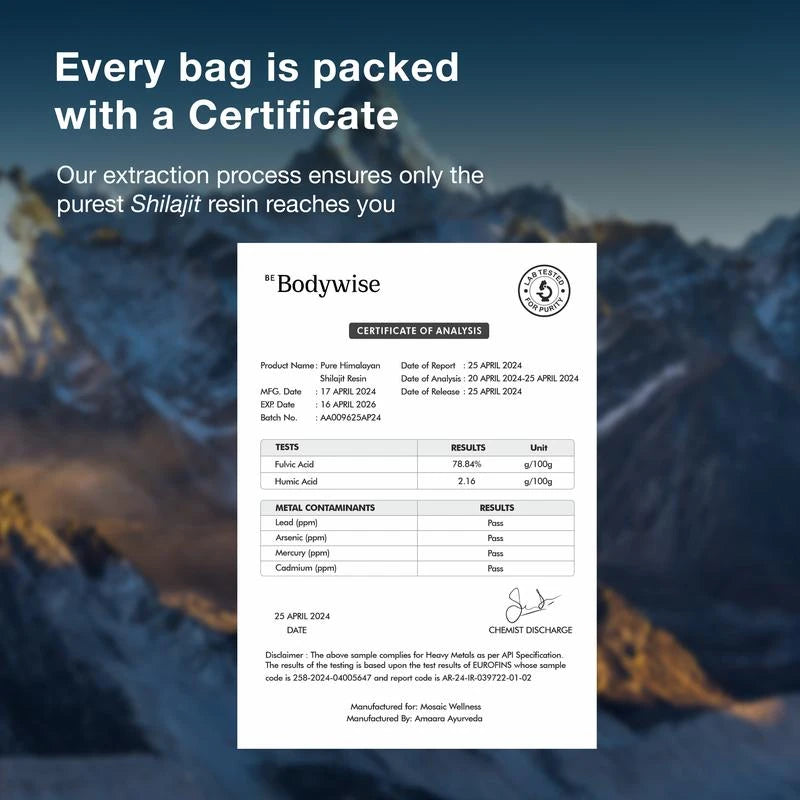 Be Bodywise Pure Himalayan Shilajit Resin | 3rd Party Lab Tested Supplement | 85+ Trace Minerals & Fulvic Acid
