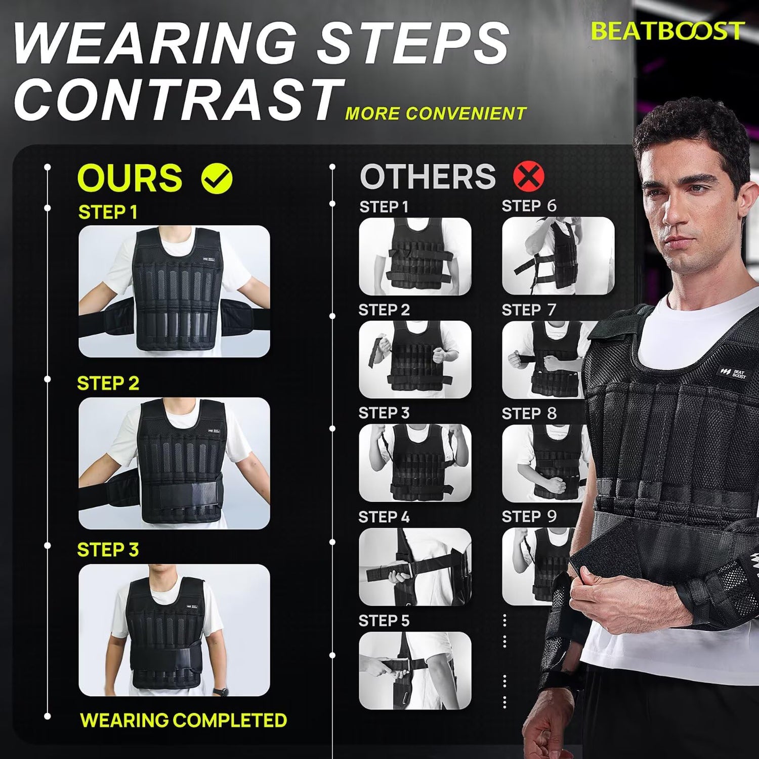 - 【CUSTOMIZABLE WEIGHT OPTIONS】Adjust the weight of your vest to meet your specific training goals. Add or remove weights as needed to enhance your strength and endurance, and see continuous progress in your fitness journey