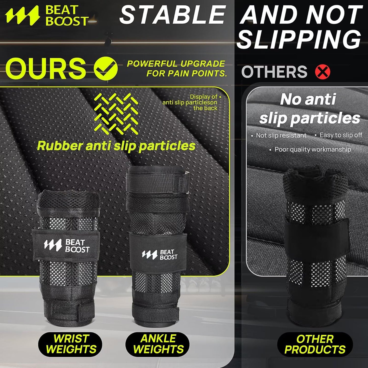 - 【PREMIUM, NON-SLIP MATERIALS】The wrist and ankle weights feature anti-slip particles that increase friction to prevent slipping during workouts. The breathable fabric ensures a snug, comfortable fit for every use