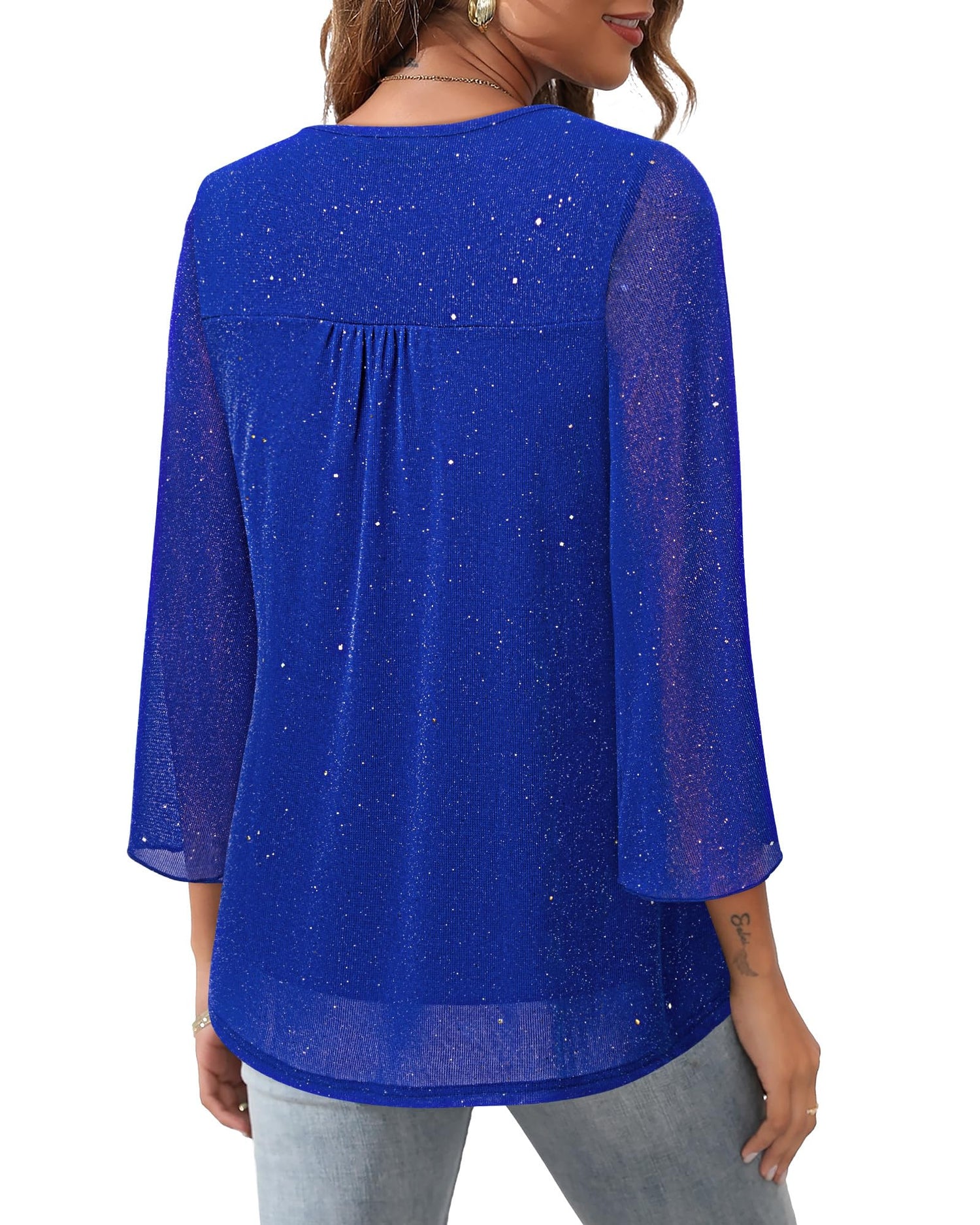 Bebonnie Dressy Tops for Evening Wear: 3/4 Sleeve Trending Fall Clothes for Women 2024 - Sparkly Sequin Homecoming Modest Dresses - Grandmother of Bride Blouse Christmas Top Star Blue XXL