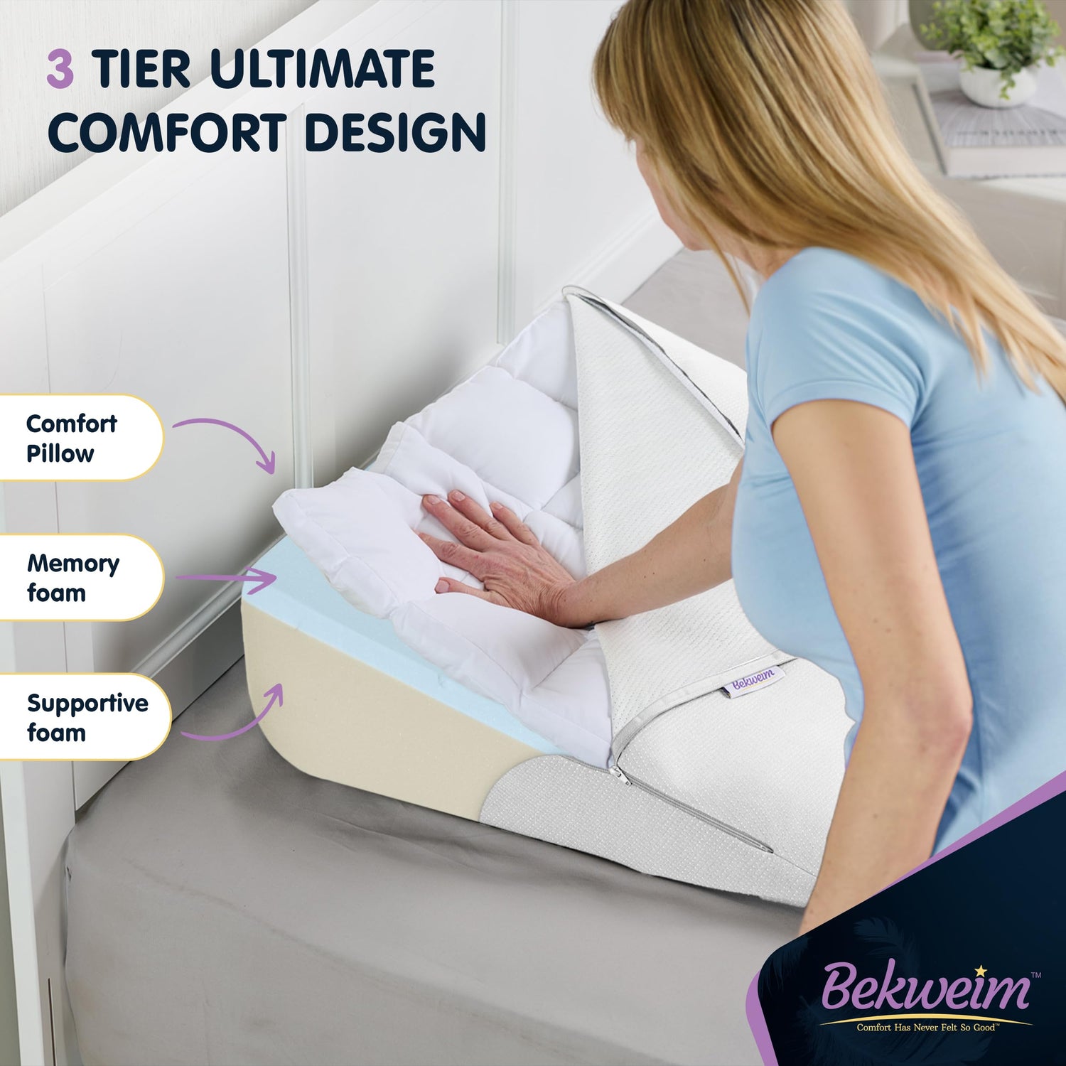 - ✔ PROPRIETARY MEMORY FOAM! Made of a dual layer of visco-elastic premium memory foam that’s denser and more durable than anything else. Consists of temperature sensitive white foam that molds your shape based on body heat. Our wedge pillow is firm and comfy! Easily change positions and maintain the same level of support due to its superior construction.