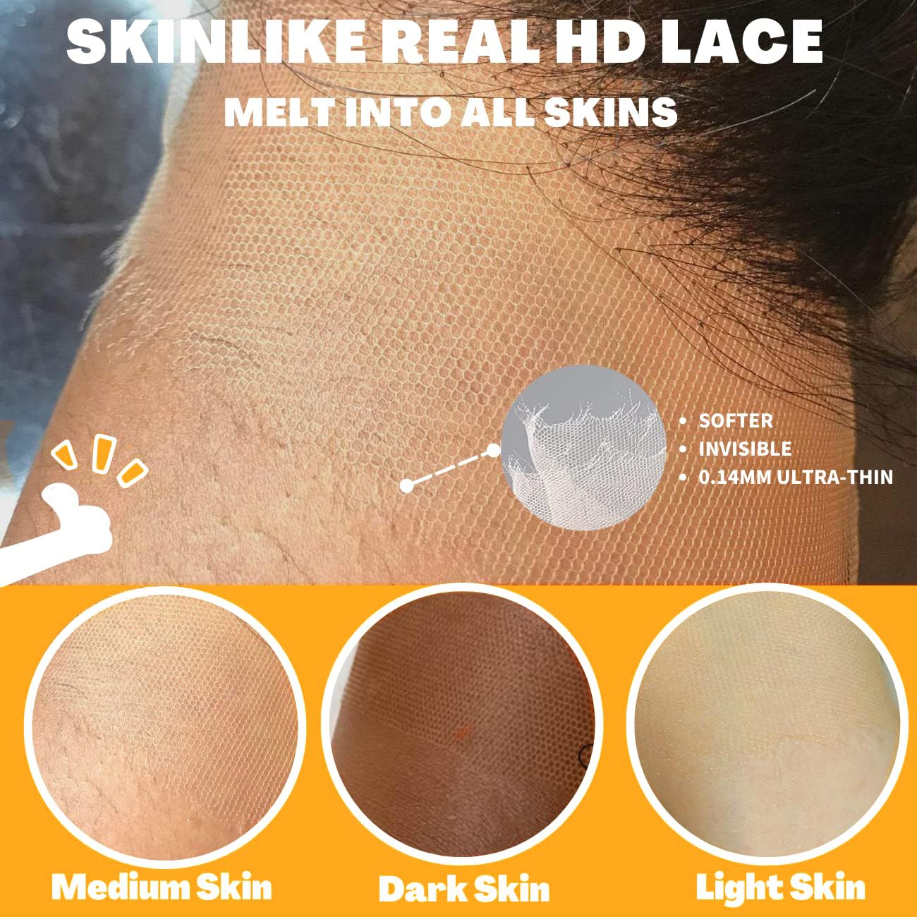 - 【Single Knot with Natural Hairline】Pre-plucked hairline with baby hair, 0.10mm ultra-thin SKINLIKE Real HD lace makes the hairline look more natural and undetectable