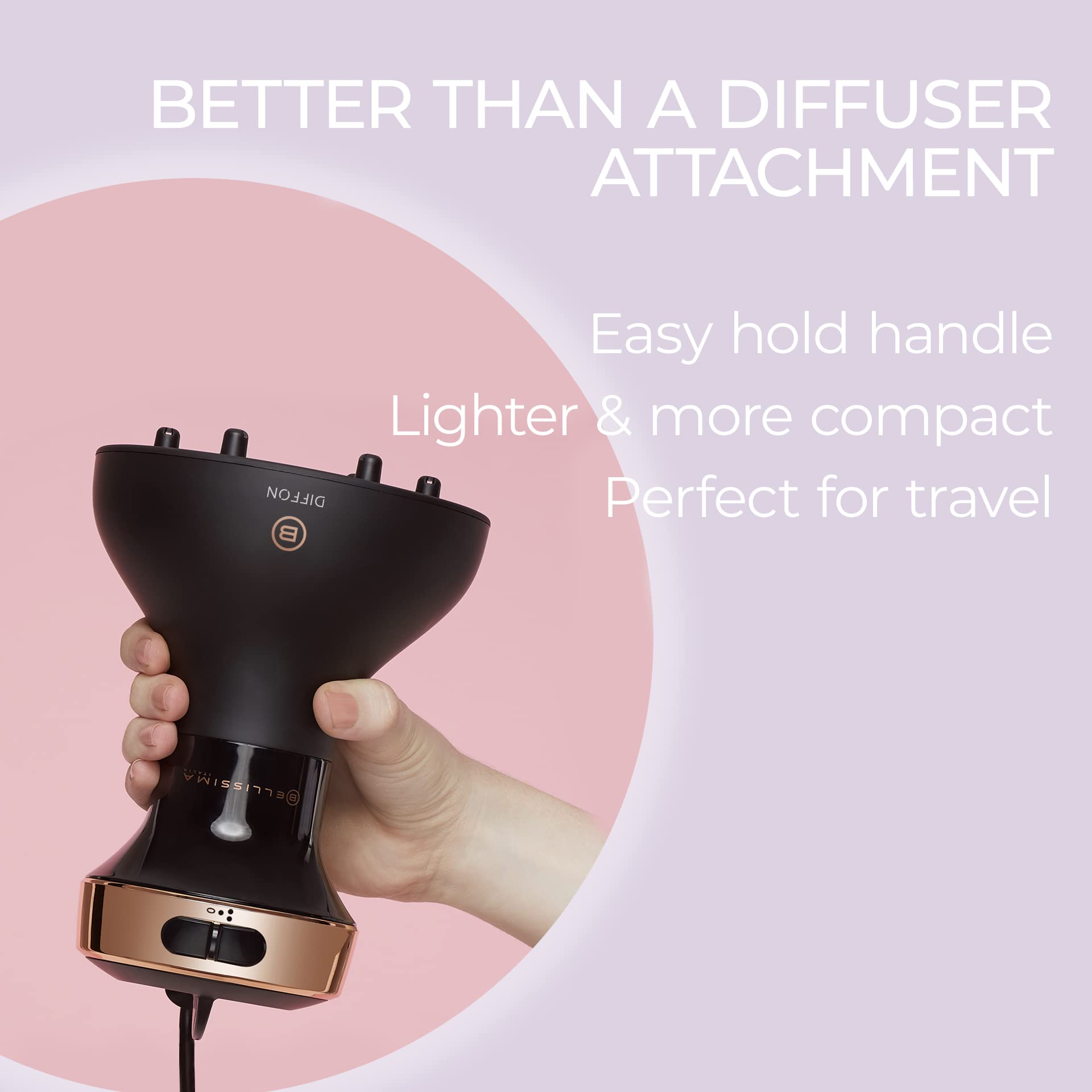 - CURLY HAIR DRYER: The Bellissima Diffon Ceramic is a curly hair dryer with built-in diffuser that defines curls, kills frizz, and boosts volume & shine with minimal heat damage. For wavy, curly, coily hair (Type 2, 3, 4)
