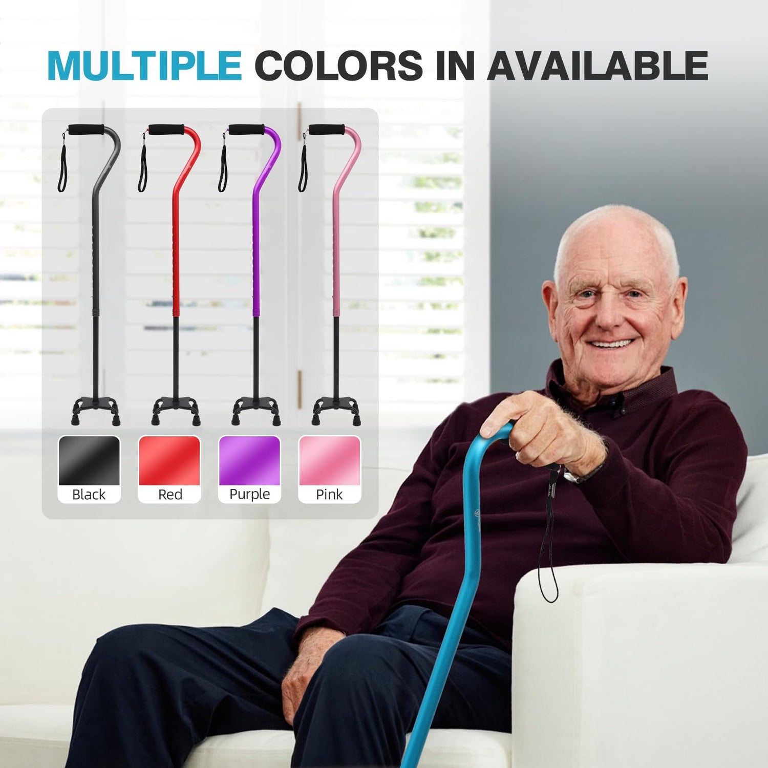 BeneCane Quad Cane Adjustable Walking Cane with Offset Soft Cushioned Handle for Men & Women Lightweight Comfortable with 4-Pronged feet for Extra Stability(Blue)