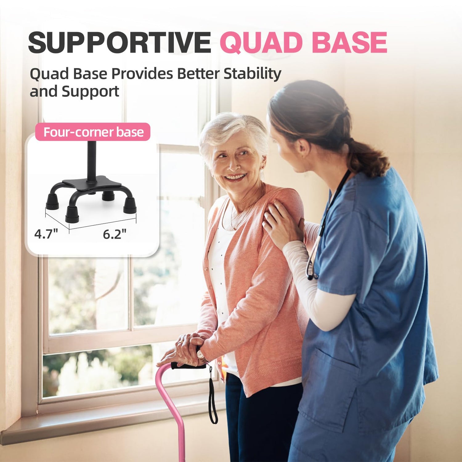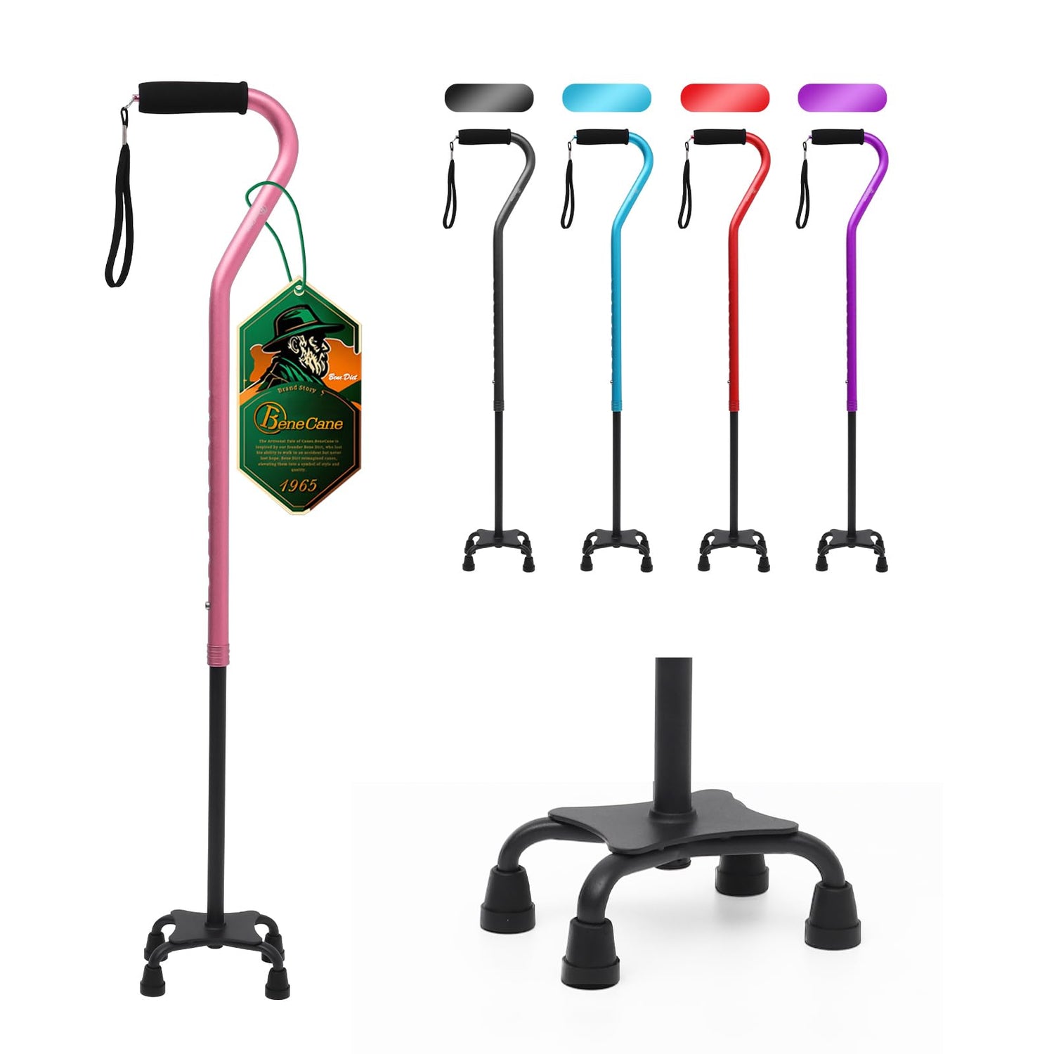BeneCane Quad Cane Adjustable Walking Cane with Offset Soft Cushioned Handle for Men & Women Lightweight Comfortable with 4-Pronged feet for Extra Stability(Pink)