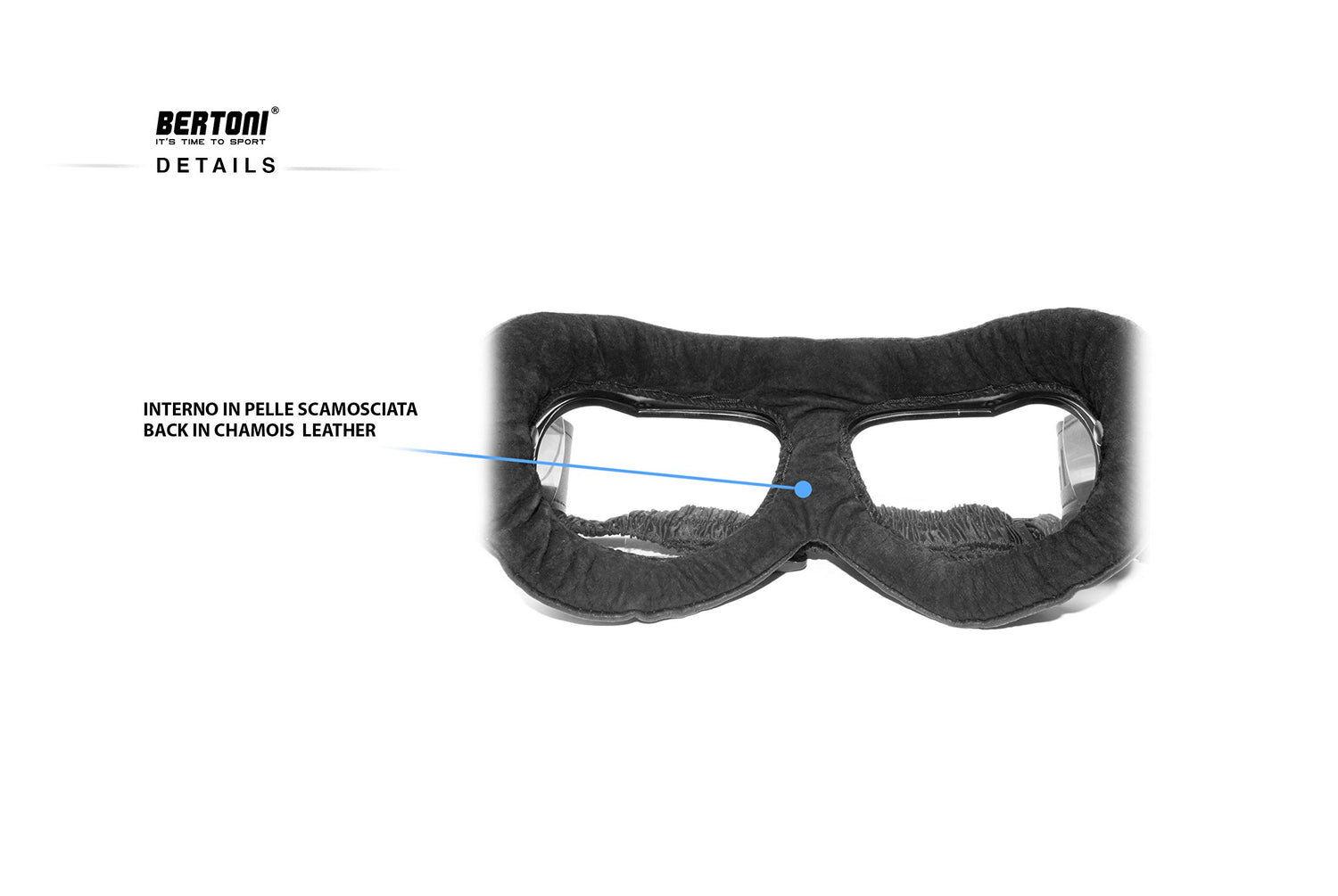 Bertoni Motorcycle Goggles Real Black Calfskin Leather AF191L Italy Vintage Aviator Bikers Glasses