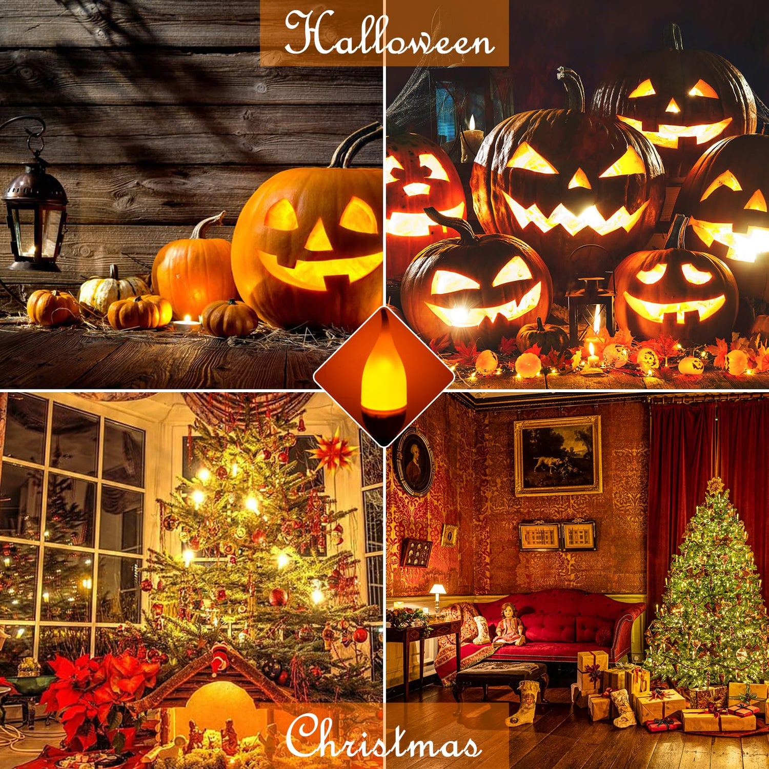 - 【Wide Application】: Flame light bulbs are widely used in living room, bedroom, porch,restaurants, party, birthday celebrations, holidays, decoration and mood lighting.Ideal for Halloween, Christmas, Valentine's Day, party decoration.