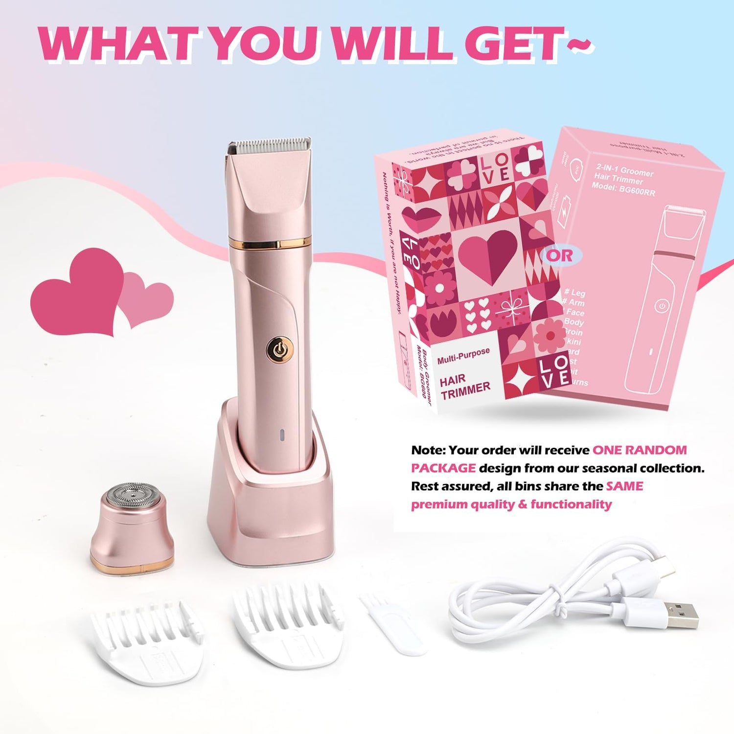 Bikini Trimmer for Women 2-in-1 – Rechargeable Electric Razors for Women, Painless Electric Shaver for Bikini, Underarm, Legs, Arms – IPX7 Waterproof, Compact Travel Design