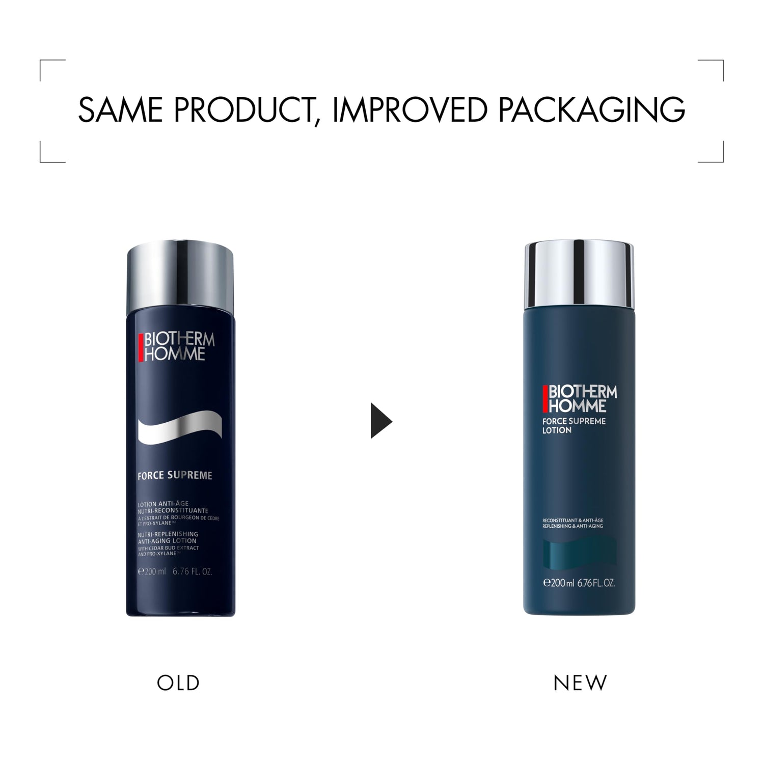 - Biotherm Homme Force Supreme Lotion is an anti-aging tonerfor men. The alcohol-free formula is enriched with regenerating cedar bud & anti-aging molecule Pro-Xylane to prevent and reduce signs of aging.