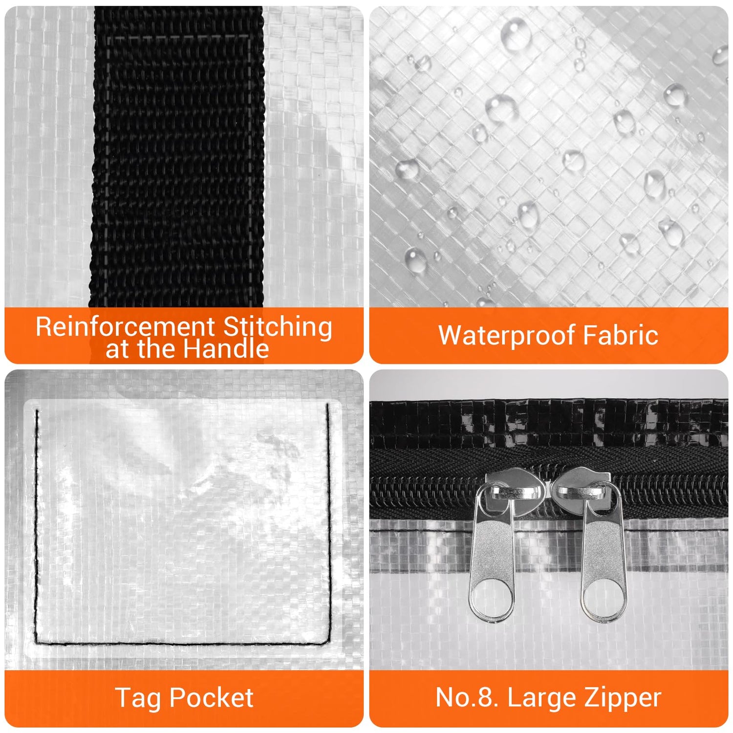 - Convenient Double-Zipper & Wide Opening: Our moving bags equipped with high-quality double zippers. And the wide open-top design makes loading and unloading your items a breeze, while the transparent material allows for quick identification of contents, saving you time and hassle