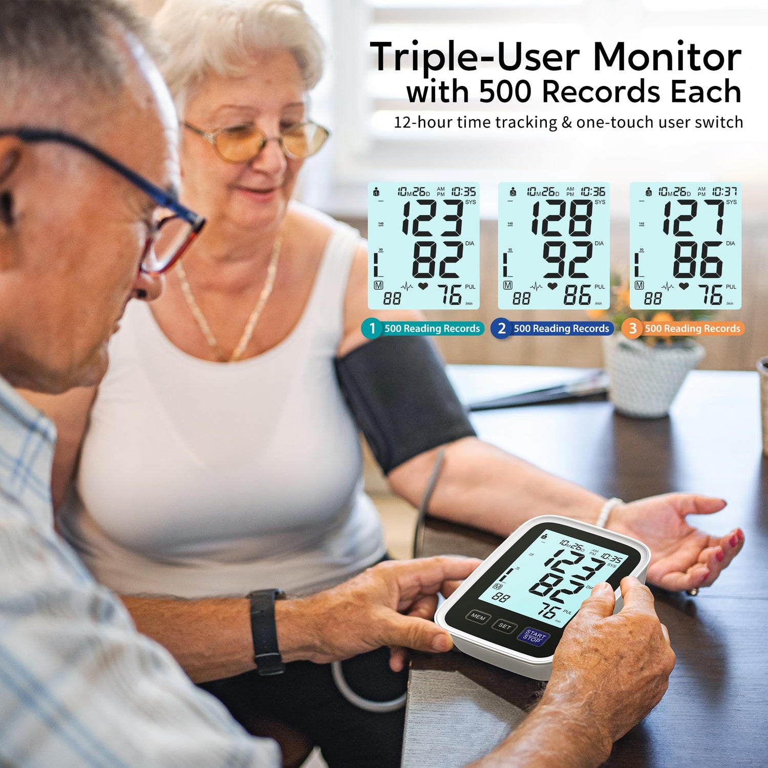 Blood Pressure Machine Upper Arm, 3 Size Cuffs, Small 7"-9", Medium/Large 9"-17" and Extra Large XL Cuff 13"-21", Accurate Automatic Digital BP Cuff Home Use, Large Backlit BP Monitor 3-User 1500 Mem