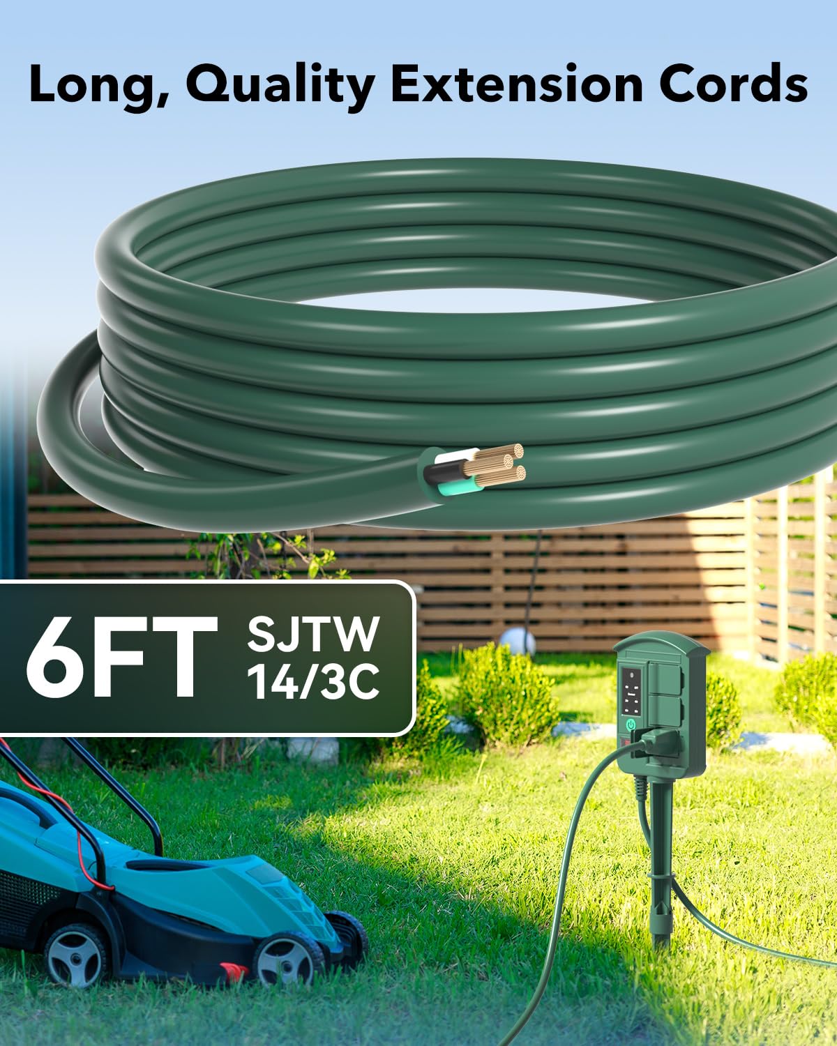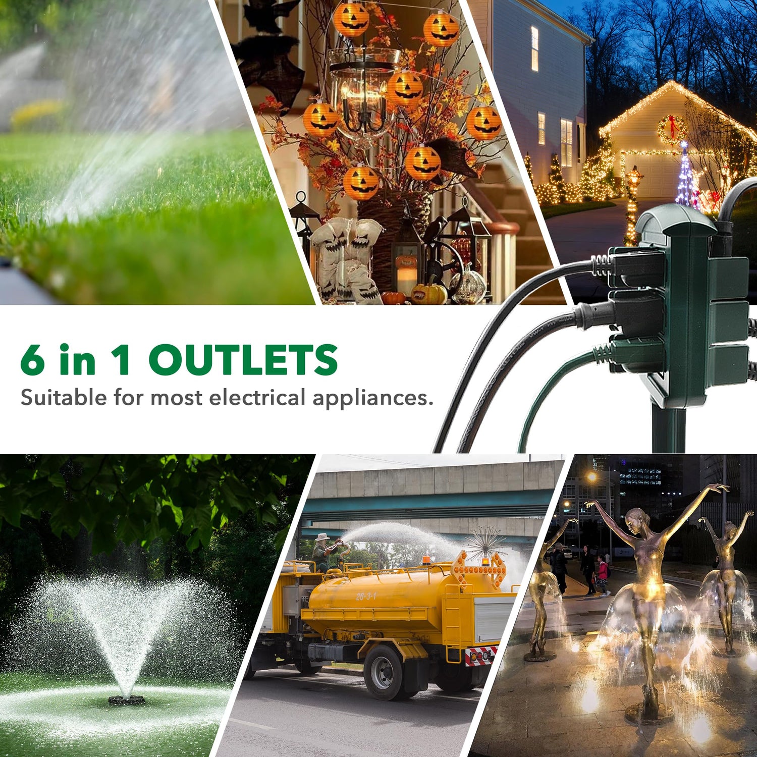 BN-LINK Heavy Duty Outdoor Stake Timer, 6 Outlets, Weatherproof, Perfect for Outdoor Lights, Sprinklers, Christmas Lights (with Remote-Photocell)