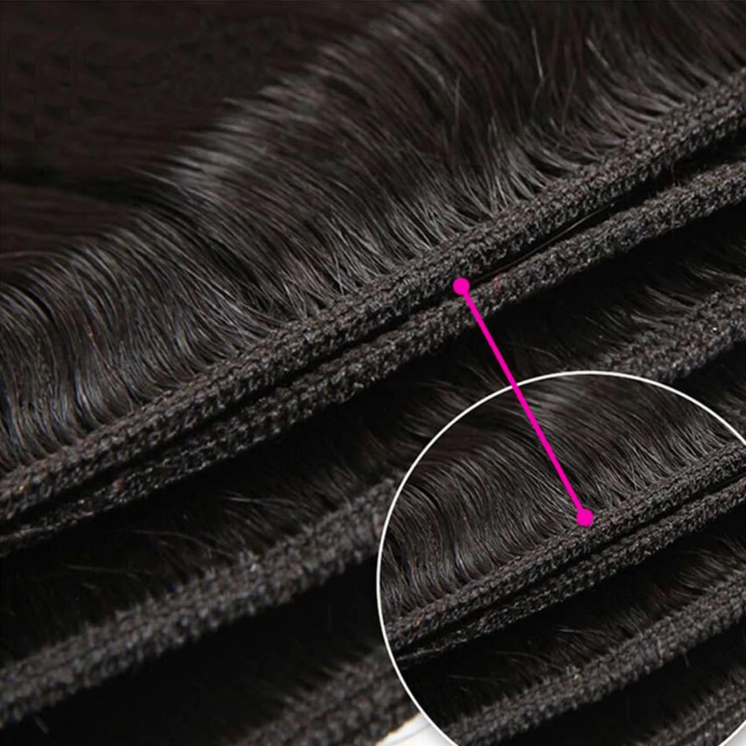 - Human Hair Bundles Quality: Thick and Full Body Well-Proportioned Thickness, Not Much Short Hair Strands Mixed. Smooth and Healthy, No Tangle, No Shedding, No Smell, Can Be Dyed, Curled and Re-styled.