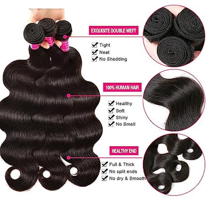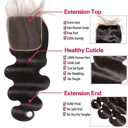 - ๐ Hair Material:100% Unprocessed 10A Grade Remy Human Hair Bundles with Closure Body Wave Human Hair Extensions Cut from One Young Donor Directly--Silky & Tight & Soft & Strong, No Synthetic Hair or Animal Hair Mixed