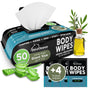 Body Wipes for Men - 50 XL No Rinse Shower Wipes + 4 Travel Bath Wipes - 9"x12" After Gym Wipes - Mens Deodorant Wipes - Face Wipes for Men -For Camping Essentials, Survival Gear and Supplies