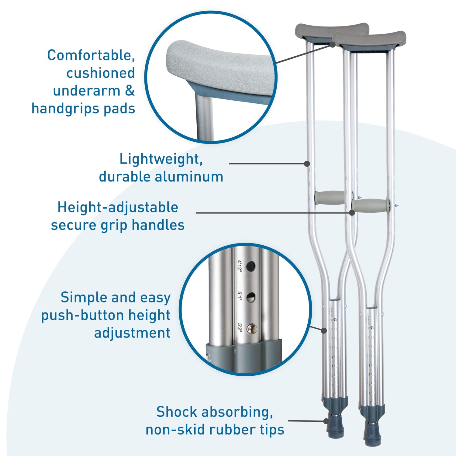- STAY MOVING! BodyMed Aluminum Crutches are designed for people 4' 6"–5' 2" tall to help support ankle, knee, and leg injuries, helping you to walk with less strain on your injured body part.