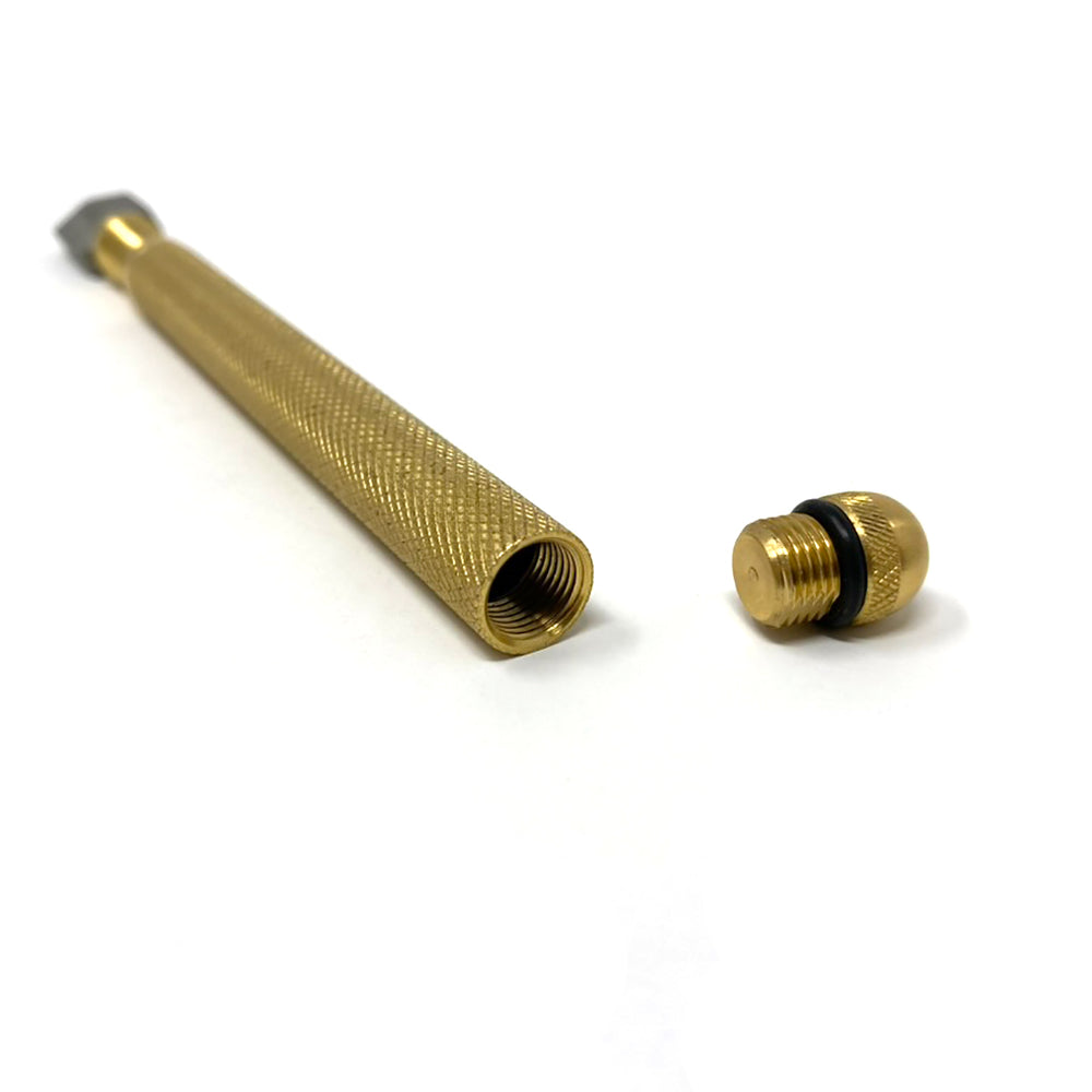 The Master glass cutter features a sturdy, knurled brass handle for an effortless grip, and the weight of the tool rests comfortably in the hand for long periods of use.
