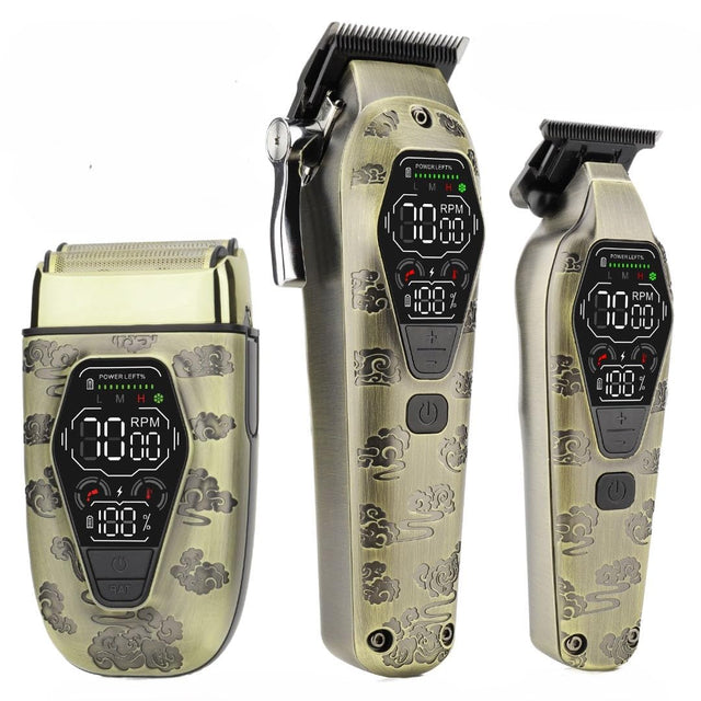 - Professional Hair Clippers for Men's Set: This clippers and trimmers set contains barber clippers with adjustable blades enabling easy trimming of diverse hair lengths; T-trimmers are perfect for precise trimming to form the most accurate edges; razor equipped with a double floating ultra-thin head net allows for close shaving of thick, short, and coarse hair; Provides an efficient and convenient haircutting service