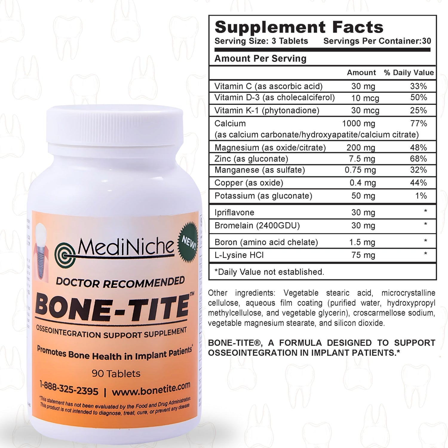 Bone-Tite Osseointegration Support Supplement I Key Vitamins, Minerals, and Nutrients to Promote Dental Implant Support | 90 Tablets | Pack of 1