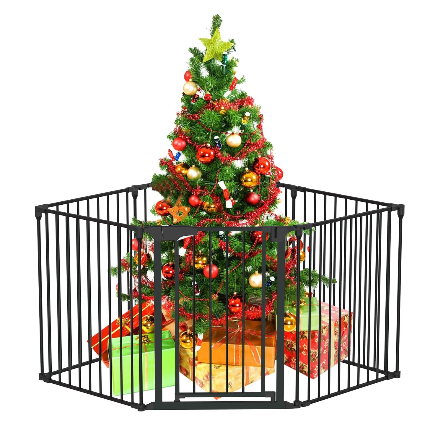 Bonnlo 120 Inches Wide Configurable Baby Gate, Fireplace Safety Fence/Guard, Adjustable 5-Panel Metal Play Yard for Toddler/Pet/Dog, Christmas Tree Fence, Includes 4 Pack of Wall Mounts, Black
