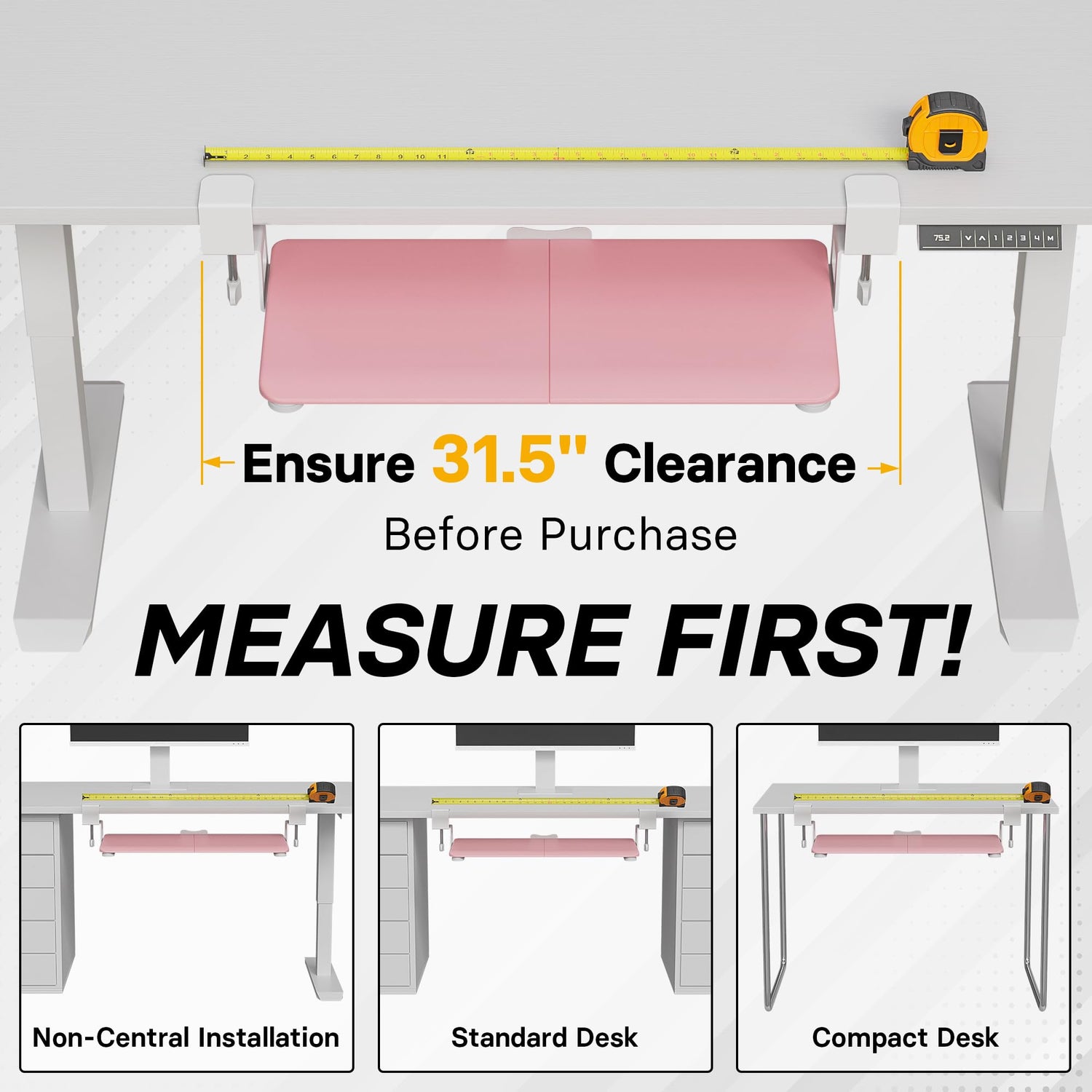 - ✅ MEASURE YOUR DESK BEFORE ORDERING – The tray requires at least 31.5" of width and 11.4" of depth underneath your desk to slide in and out smoothly. Confirm these dimensions to avoid fitment issues