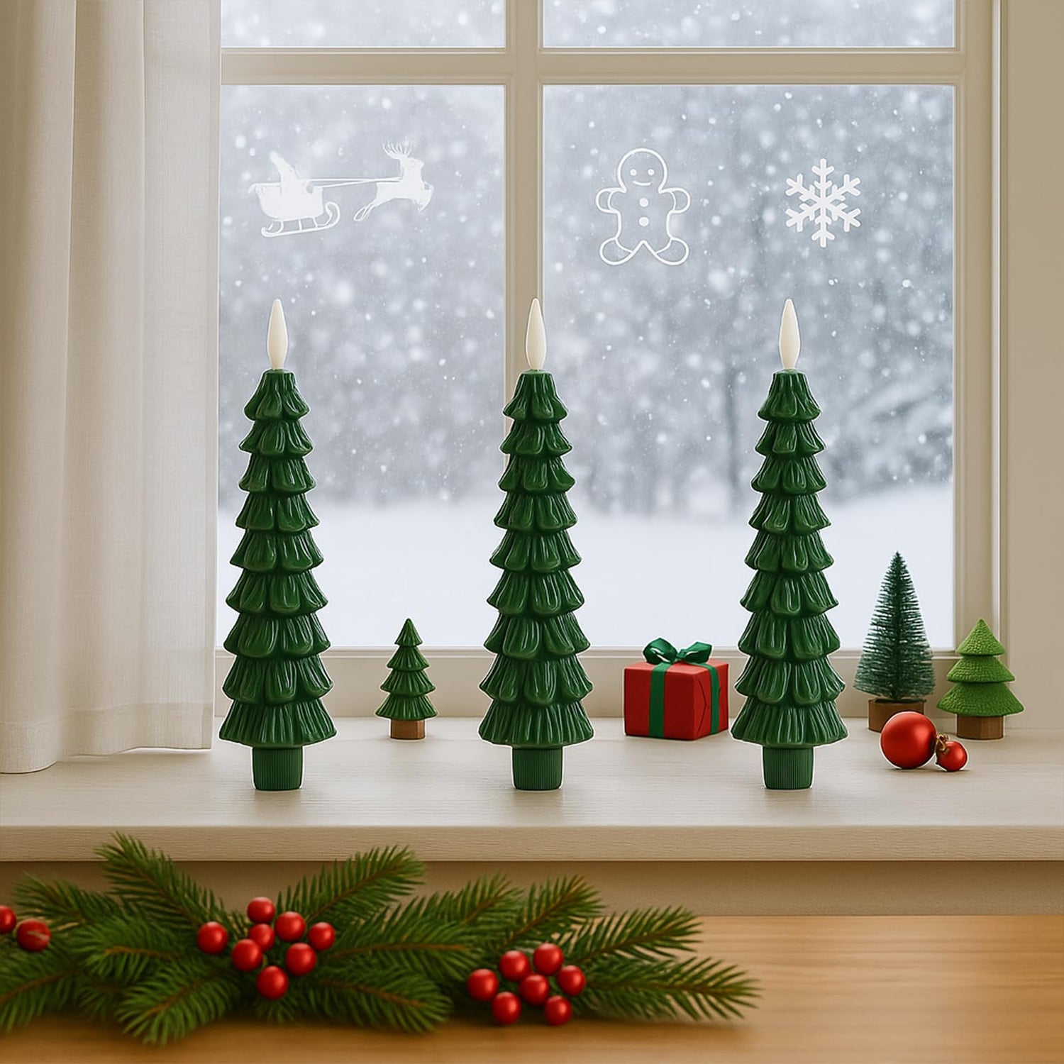 - [CHRISTMAS TREE CANDLES] These christmas taper candles are made from premium plastic, 3D likering flame and lifelike leaves that feel and looks like a real taper candle flame, The warm glow creates a romantic ambiance, Perfectly complements your candleholder design.