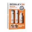 Help restore visibly thinning hair with BosRevive 30-Day Kit designed for Color Treated Hair featuring a simple, 3-step system including a Nourishing Shampoo, Volumizing Conditioner and Leave-In Thickening Treatment. Sulfate-free BOS REVIVE Nourishing Shampoo removes build-up, such as DHT, from the scalp surface, while cleansing hair of product build-up and pollution. Pumpkin Seed Extract and Saw Palmetto, natural DHT-blockers, combine with Rosemary Extract and Panthenol to help reduce scalp inflammation, increase scalp circulation and strengthen the hair to promote healthy hair growth. Maintains a clean environment for the appearance of thicker, fuller-looking hair. BOS REVIVE Volumizing Conditioner is a weightless, daily conditioner containing DHT inhibitors that infuses body and shine without weighing the hair down. Saw Palmetto, a natural DHT-blocker, works with Niacin to help revitalize the hair and reduce shedding while Biotin and Panthenol help strengthen hair strands. Hair appears fuller and nourished with more volume. BOS REVIVE Leave-In Thickening Treatment, designed to help inhibit DHT, is a lightweight, foaming, alcohol-free intensive treatment may aid in rejuvenating the scalp and help support the growth of stronger, healthier hair. Pumpkin Seed Extract and Soy Proteins, natural DHT-Blockers, combine with Apple Stem Cell Extract and Panthenol to help reduce scalp inflammation, increase scalp circulation and strengthen the hair to promote healthy hair growth. May assist in thickening hair, reconditioning fragile hair and provide instant volume.