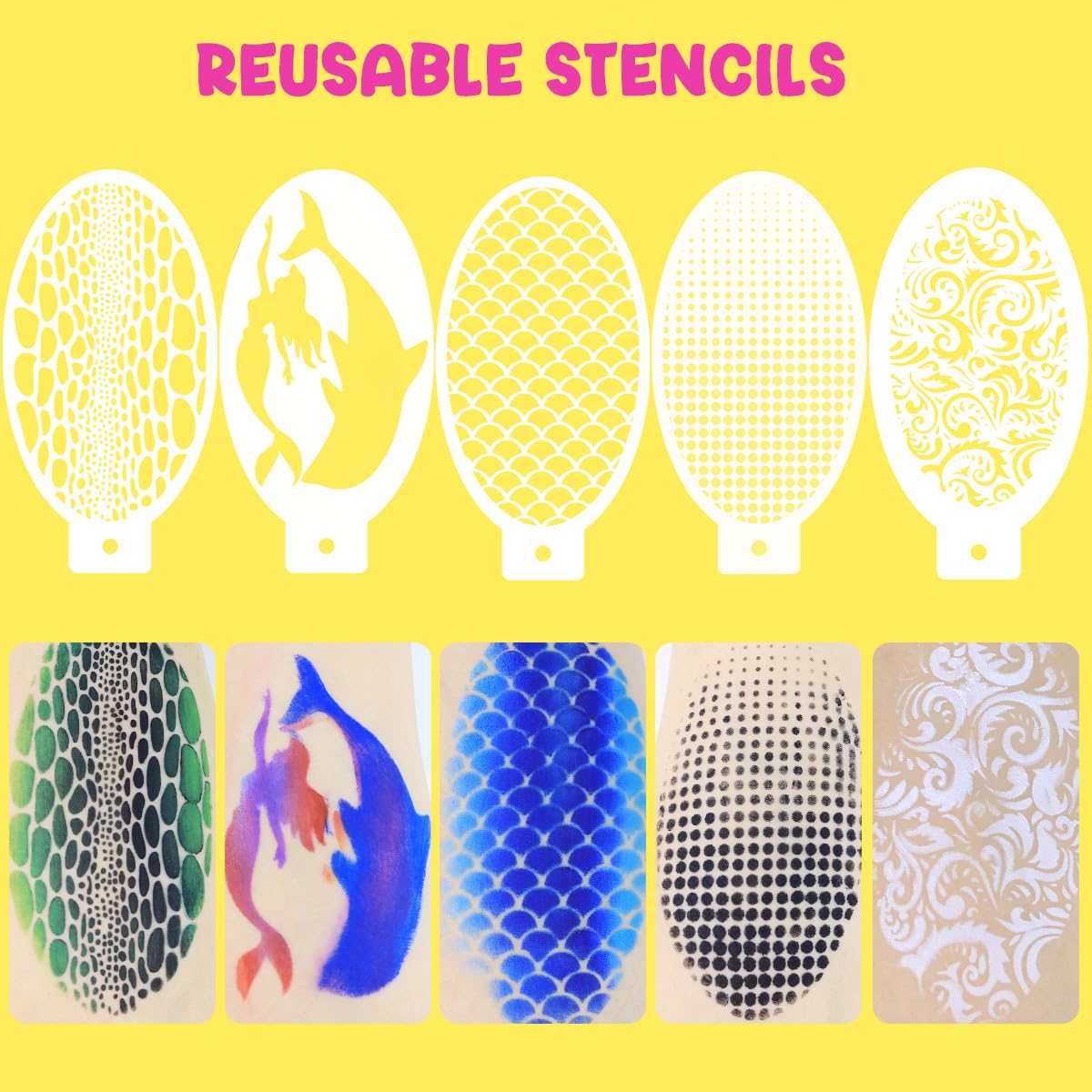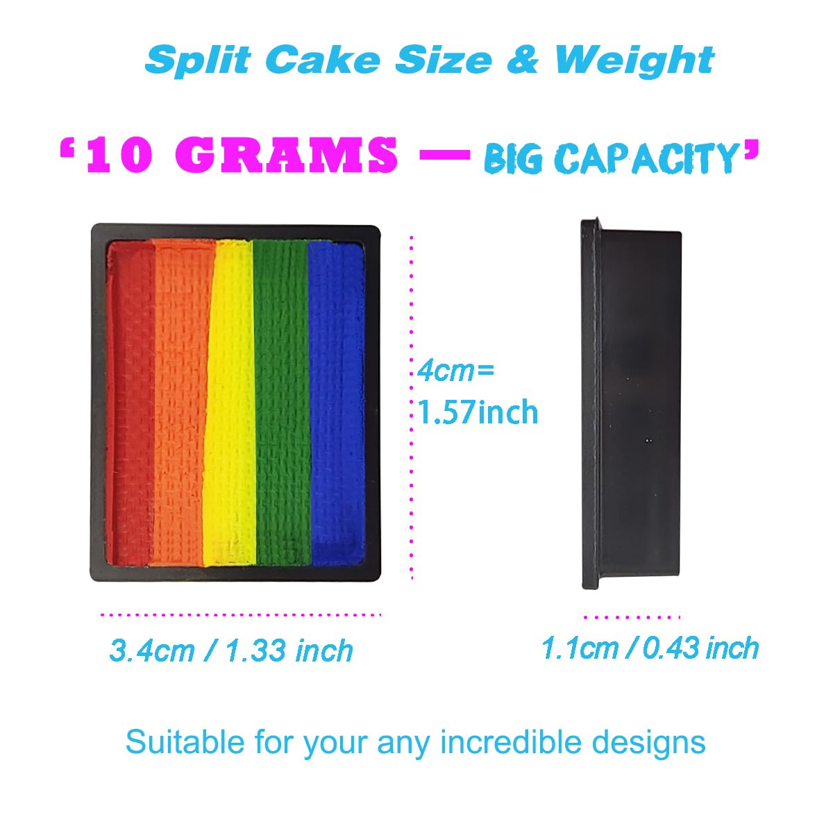 - The Split Cake kit contains 10 x 10gram Professional split cakes,2 x Vibrant color (black and white),4 x Professional brushes,5 x Professional PET Stencils.