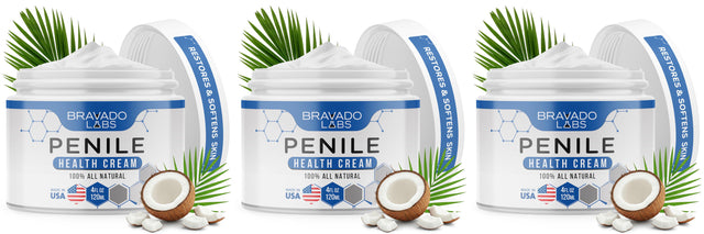 3 Pack Bravado Labs Premium Penile Health Creme - 100% Natural Cream Lotion for Men's Intimate Health - Redness, Dryness, Anti-Chafing Relief Moisturizer - 4 oz