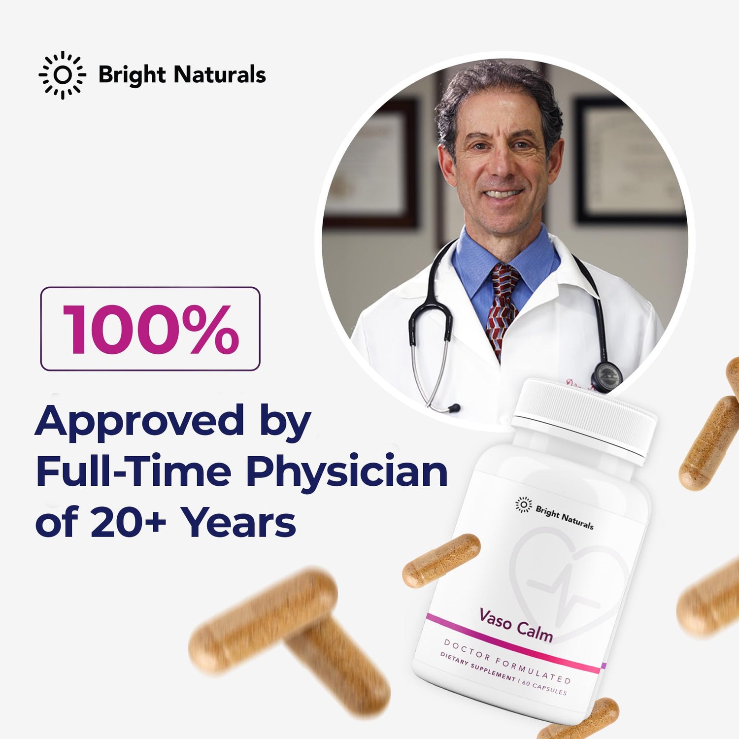 - Doctor-Formulated and Recommended: Vaso Calm's manufacturing and sourcing process is made with the 100 percent approval of a leading anti-aging medical doctor with over 20 years of clinical experience.